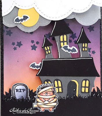 I cut the bamboo with the also new Bamboo Cover Plate. The die is 5" x 7", the tunnel card 5" x 5". That gave me the possibility to move the die cuts up or down a bit so it's not that obvious that they are all made with the same die. I cut them from light green cardstock and shaded them with Copics.