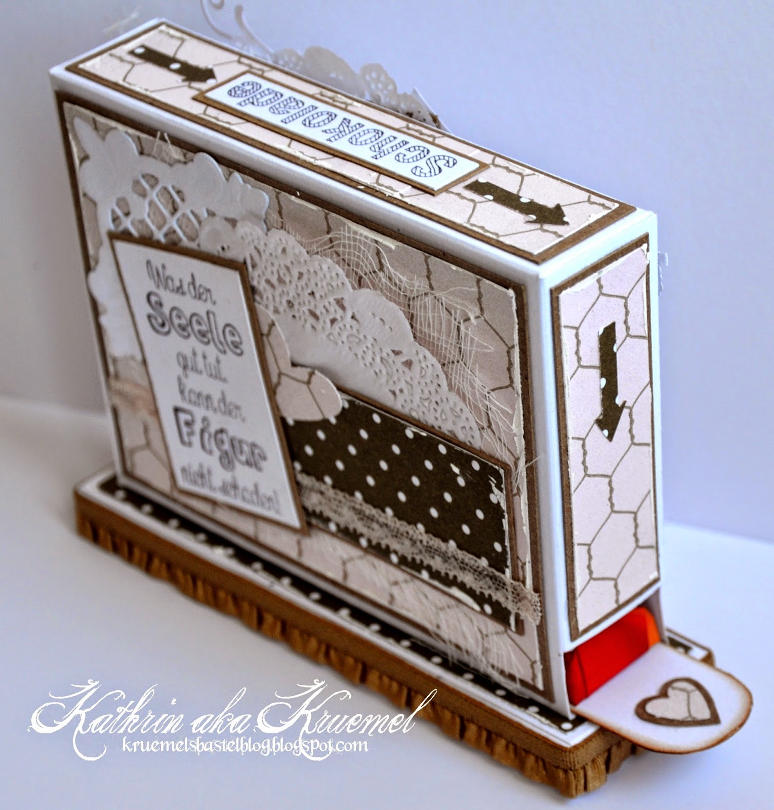 Arrows on the top and the front lead to the chocolat. And I used another selfmade stamp on the top.