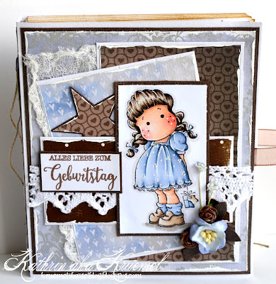 Heute habe ich ein weiteres der Geburtstags-Büchlein zu zeigen. Diesmal in braun und blau und mit einer Tilda verziert.