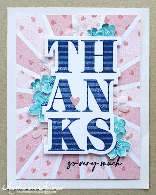 The adventurous mouse with her son in the paper plane is from the Just Plane Awesome set and again colored with Copics. Above it I placed a little speech bubble into that I stamped a tiny hello from the Elephant Parade stamp set. Under the text I added a tiny light blue heart confetti. To adhere the mouse and the speech bubble onto the cloud background I used thin foam tape again.