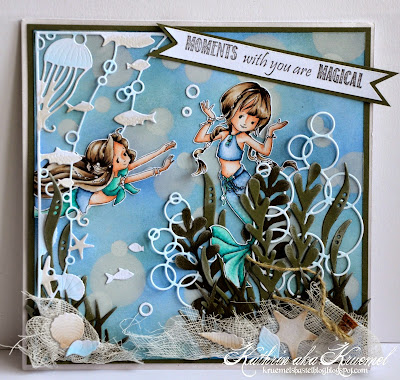 Mein Haus ist ein kleiner Shop geworden - und wie man sieht, war da jemand schon ordentlich shoppen. Das Motiv ist ein Ministempel von Whiff of Joy, die Shopfront ist mit einer Stanze von Magnolia gemacht. Das Schild, der Baum und die Markise sind von MFT. Das tolle ist, dass die Fenster mit Vellum hinterlegt und auch aus der Box geschnitten ist. So kann man den Inhalt schon ein wenig durchschimmern sehen.